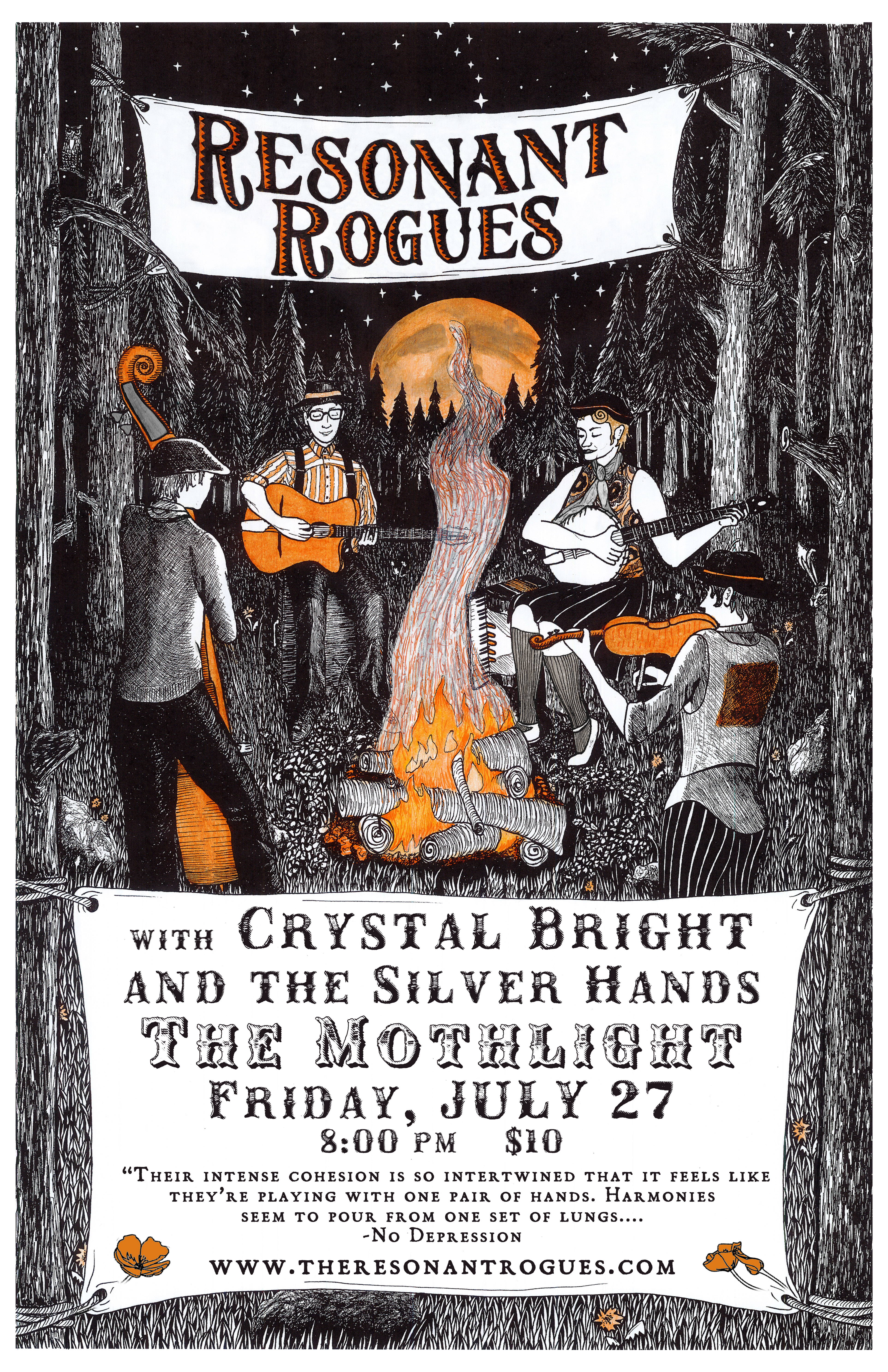 Summer Summit tour poster Resonant Rogues Crystal Bright and the Sivler Hands Mothlight